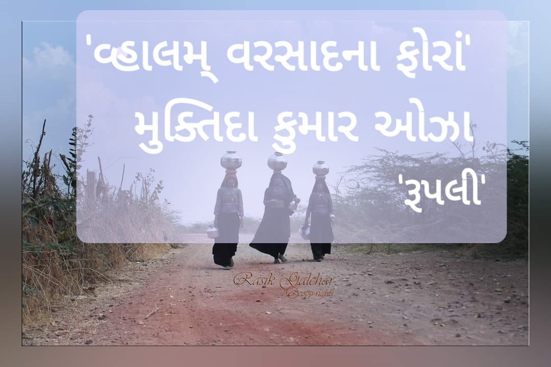આ તો,વરસાદમાં વાલમ્! ના સાંભળું તને હું? ધોધમાર વરસાદ છે!! ભીંજવું પ્રીતમ તને હું. ઝીણા ઝરમર વરસાદે, વાલમ કેમ તારા વહાલના ફોરાં ના લૂટું? આણીકોરે વરસાદની હેલીમાં હું ઓણી કોરે સાવરિયા! બેઠો હવેલીમાં તું! આવને, આ મોસમને માણીએ માણીગર! મન-મોતીના ફોરાં વહાવીએ એક/મેક વહાલથી ભીંજાઈ…એ… આ તો વરસાદમાં વાલમ્! ના સાંભળું તને હું..